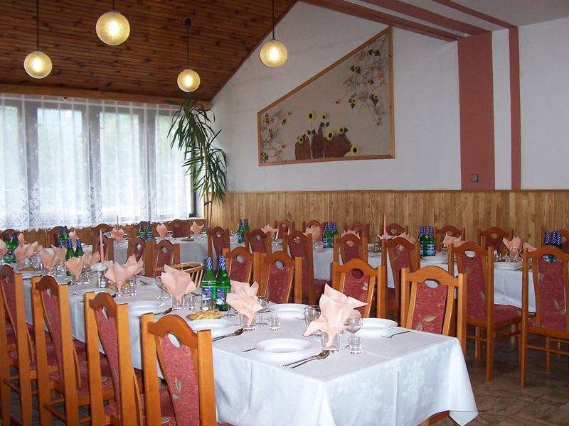 reštaurácia, bar, letná terasa, 4 konferenčné miestnosti, internet.