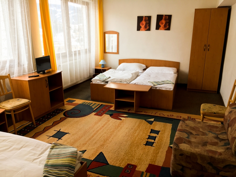 2 až 6 lôžkové izby, novozrekonštruované izby na 1. poschodí majú vlastné sociálne zariadenie a sprchovací kút (46 lôžok), izby a 2 poschodí majú spoločné sociálne zariadenie.