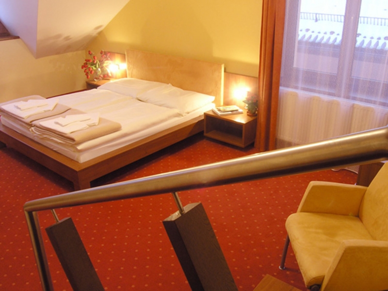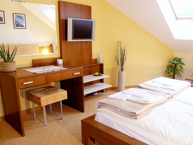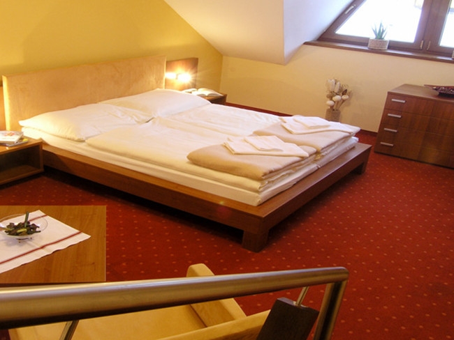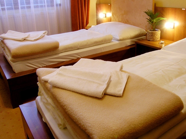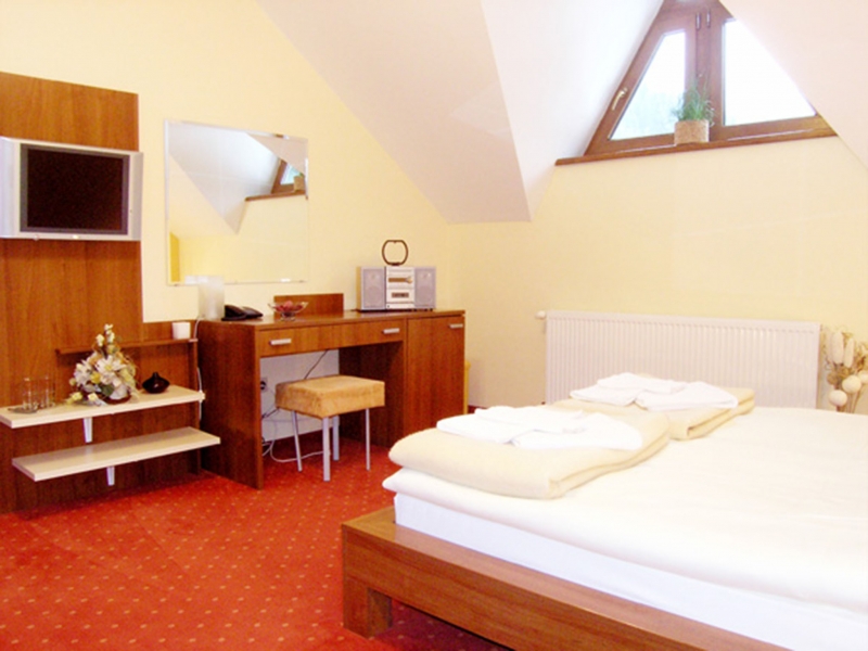 Priestranné 2 lôžkové izby a apartmánys vlastnou kúpeľňou a toaletou, TV so satelitným príjmom, pracovným stolom, telefónom. V izbách lux je navyše chladnička, fén na vlasy a hifiveža.
