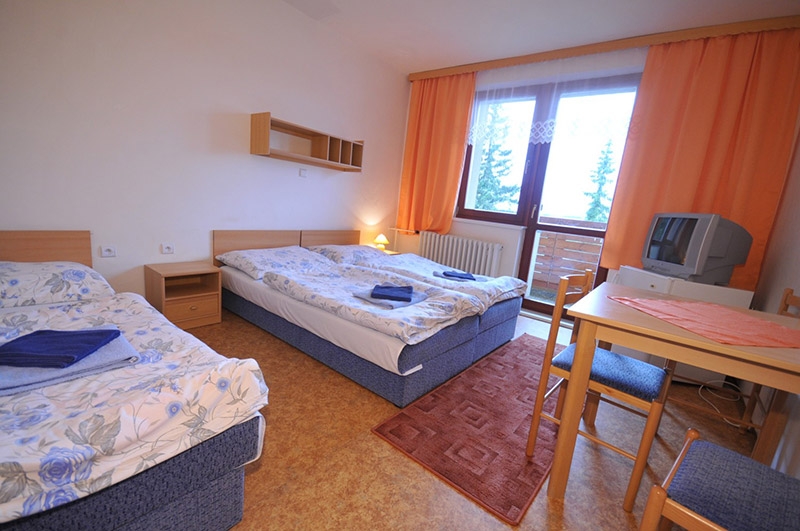 moderné 2-,3-lôžkové izby a apartmánové izby s vlastnou kúpeľňou a WC.